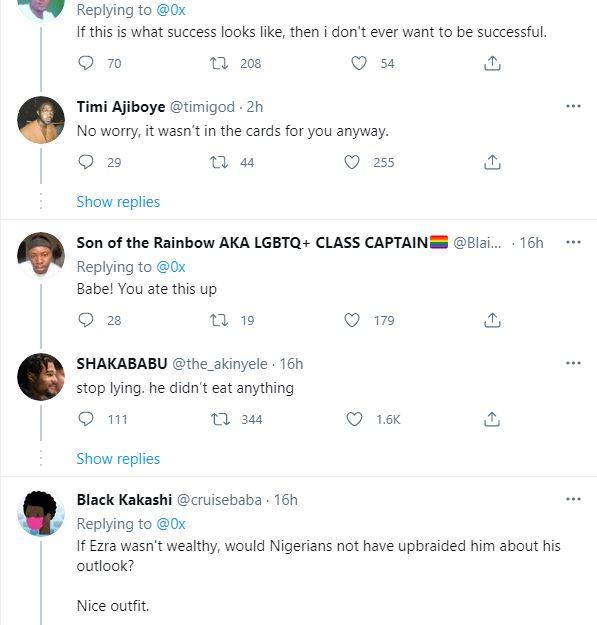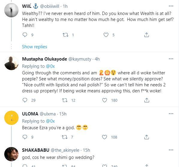 @manizie_ufue wrote: “What values will this generation leave behind? From his looks, he doesn’t even look happy and comfortable to be dressed that way. But what do I know”