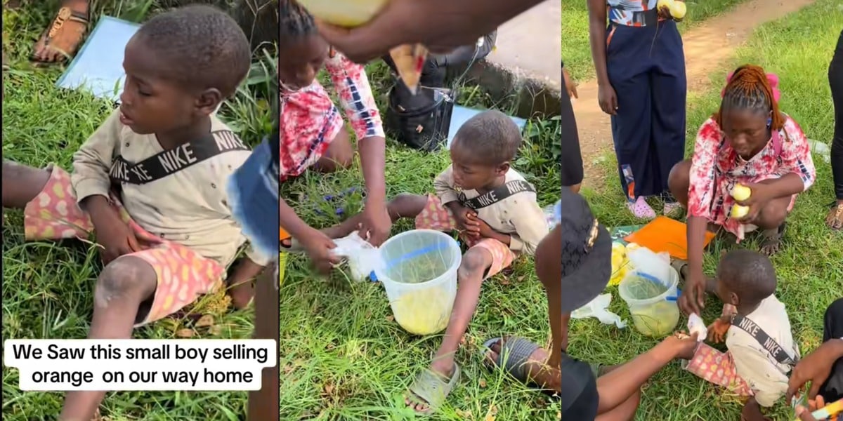 A group of ladies attracted attention on social media as they assisted a young boy running a fever by providing food and water, while also helping him sell his oranges.