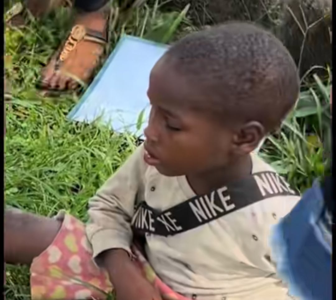 “People are suffering” – Little boy with fever sleeps on road while selling oranges, ladies sit with him, and sell on his behalf