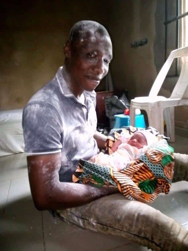 “She just open her eye since after her birth and we looked eye ball to eye ball. E sweet oooo to be a father. We had a father and daughter conversation and at length she smiled at me. And I promised to always teach her the ways of the Lord. I didn’t forget to tell her how priceless she meant to me. That I waiting for 13 good years with shame, pains and mockery from people for not having a child, but today God decided to silence my accusers and feeds them with shame…Jesus you are so good to me