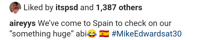 In a subsequent post, Mike posted photos of himself and his wife and revealed they both flew to Spain to “Check on something huge”.