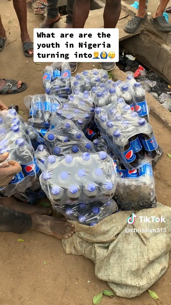 “Person boyfriend and crush” – Netizens react as residents parade Nigerian man who stole packs of Pepsi drink (Video)