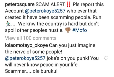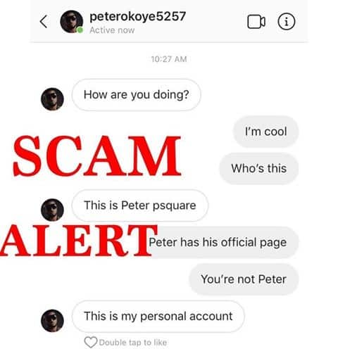A Scammer has stolen Musician Peter Okoye‘s Identity. According to Peter Okoye, the scammer is using his name to defraud unsuspecting people. He also shared the screenshots and wrote;