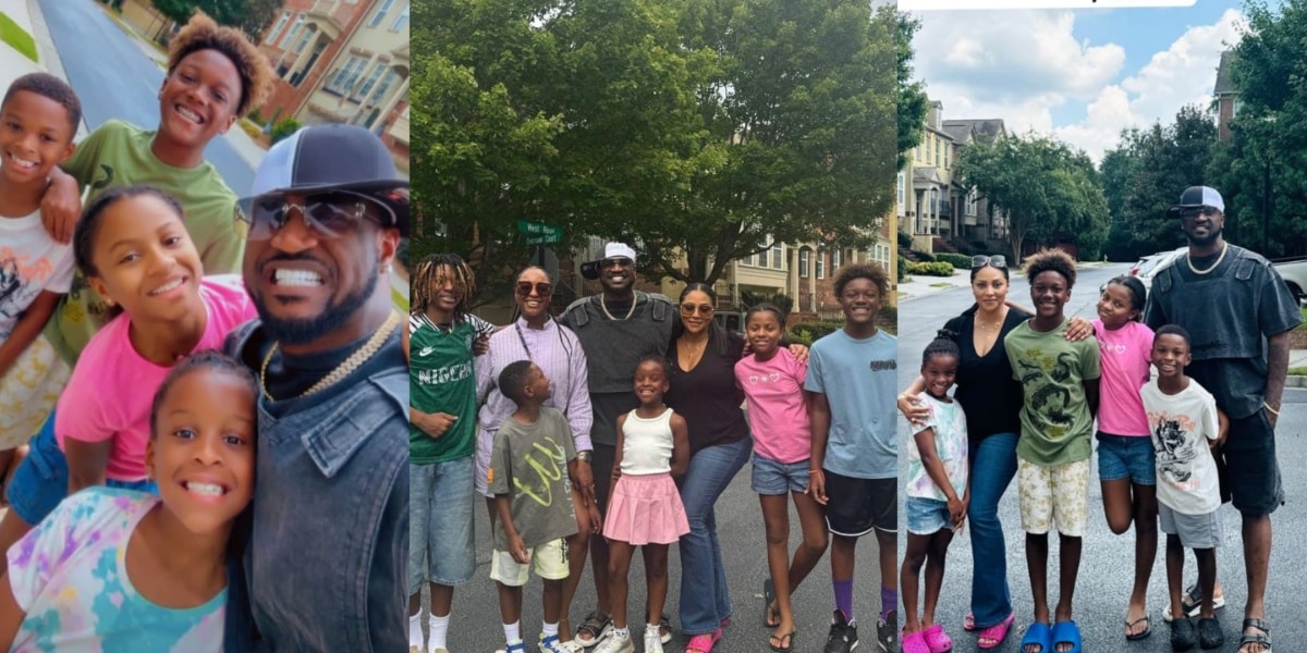 Amid the ongoing feud between the brothers, Veteran singer Peter Okoye shared a series of photos featuring his family alongside his twin brother Paul’s family.