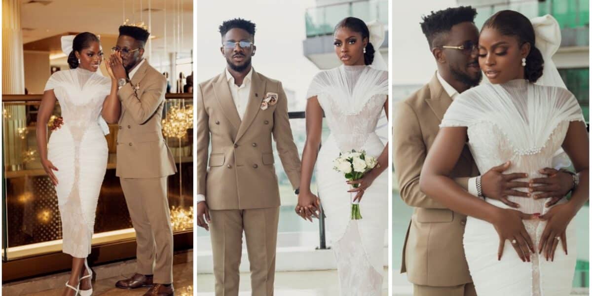 Nigerian Gospel singer, Peterson Okopi and his fiancee, Prudent Gabriel, have joined the ranks of married couples as they tie the knot in a civil wedding ceremony.