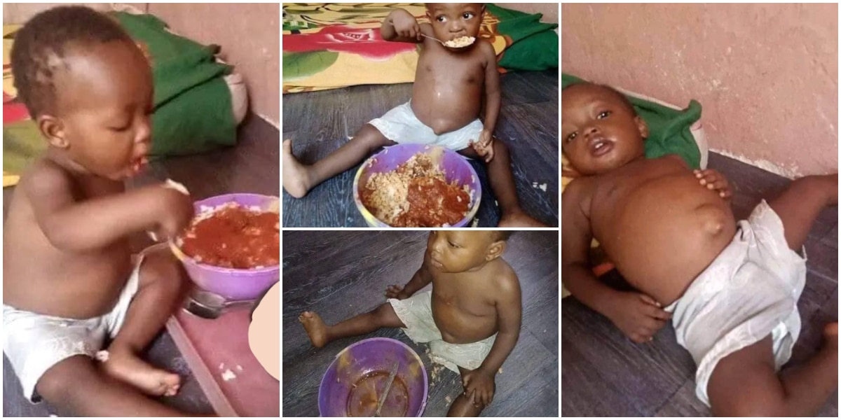 A photo capturing a little child devouring a large bowl of rice has gone viral on the internet, sparking a wave of discussions online.