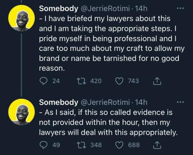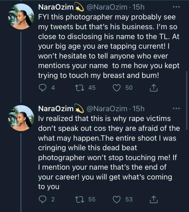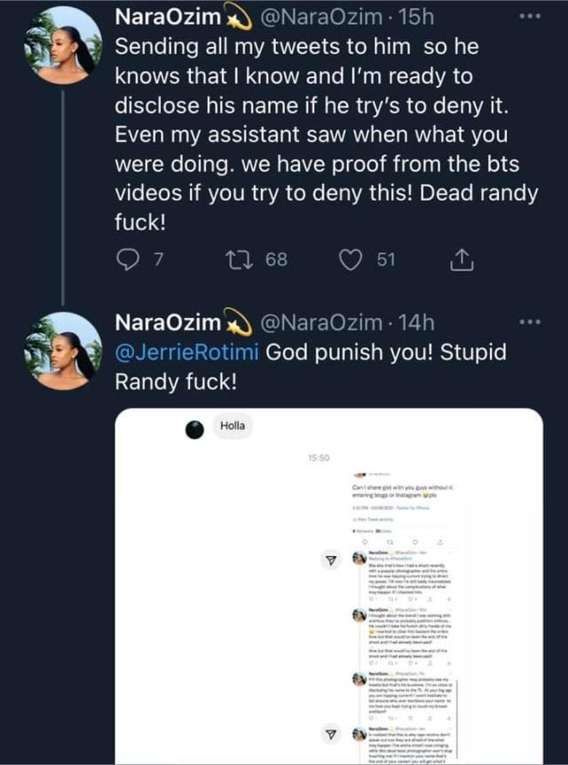 A photographer who got dragged on the micro-blogging platform, Twitter by a model who claimed he harassed her sexually by inappropriately touching her during a photoshoot has vowed to take up legal actions.