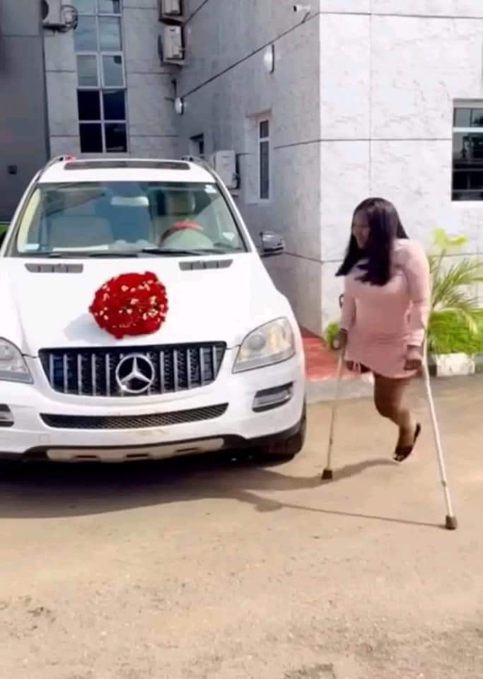 Physically challenged actress, Doris Akonanya, over the moon as she receives car gift from fiance (Photos)