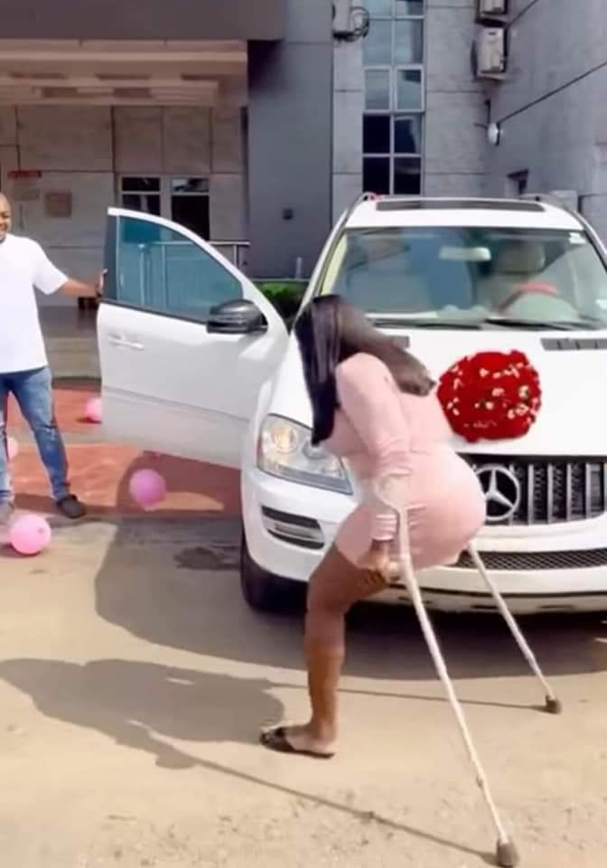 Viral photos showed the excited lady expressing her joy as her fiance led her to the car.