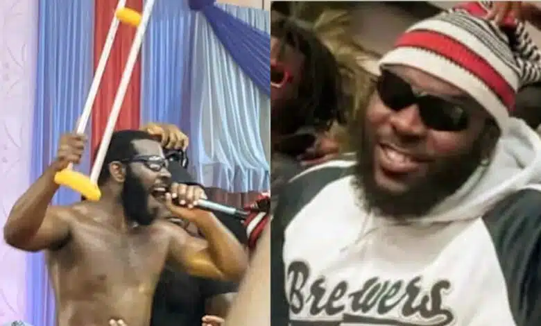 Physically challenged fan gives up his crutches to Odumodublvck during his performance