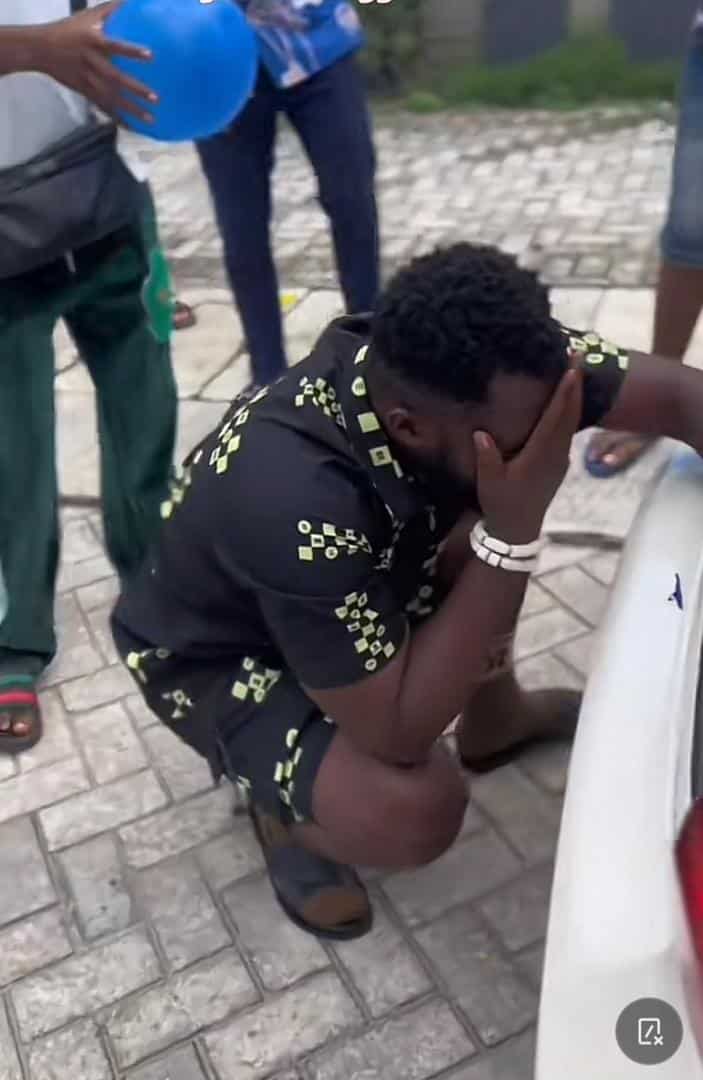 The overwhelmed man could not hold back the joy as tears rolled out of his eyes while taking the delivery of his car and other items that came with it.
