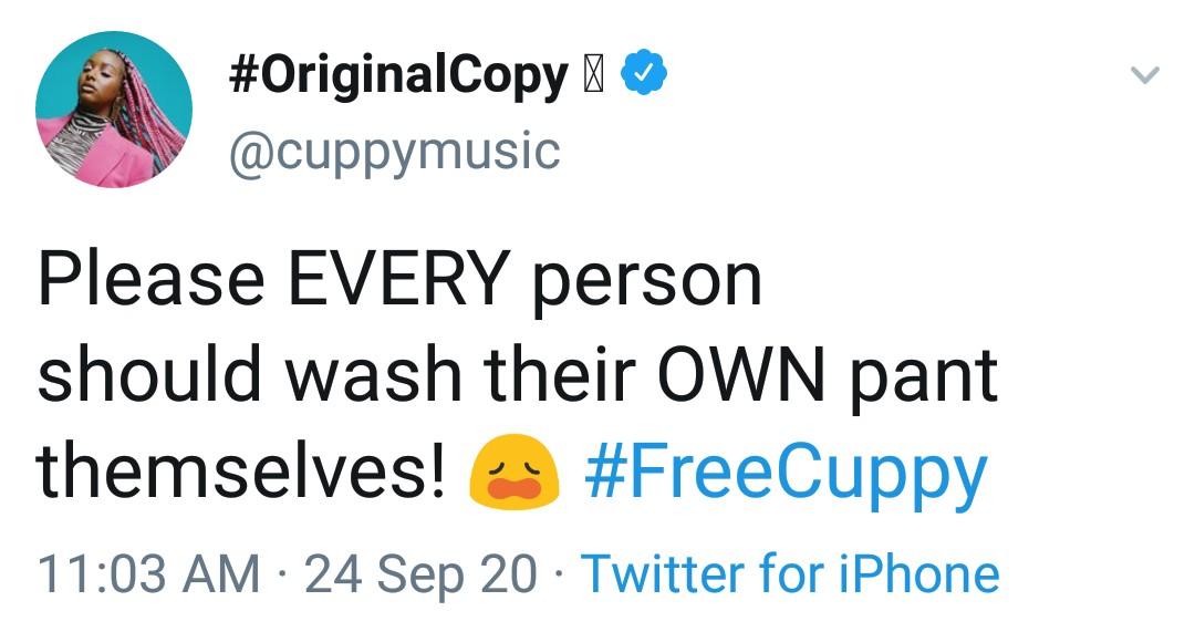 DJ Cuppy, in her response, advised everyone to be washing their pants themselves.