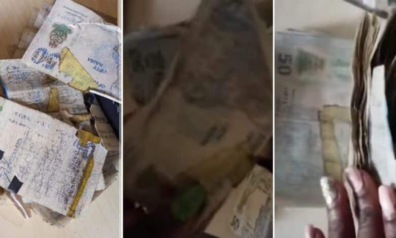 In the video, she showed the carefully selected wads of torn and damaged ₦50 notes which she claimed she got from First bank, Nigeria.