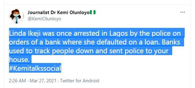 “Linda Ikeji was once arrested in Lagos by the police on orders of a bank where she defaulted on a loan. Banks used to track people down and sent police to your house.