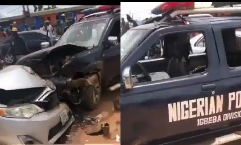 In a shocking incident captured on a video shared on Twitter by user @Naija_PR, a police van was involved in a car chase that led to the crushing of a customer’s vehicle.