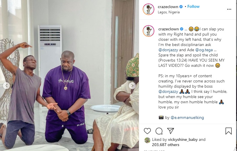 Popular Nigerian Instagram comedian Craze Clown has praised Mavins Record boss, Don Jazzy over his high level of humility.