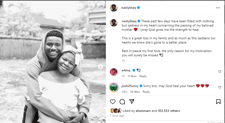 In an Instagram post, the content creator revealed that he have lost his mother to the cold hands of death.