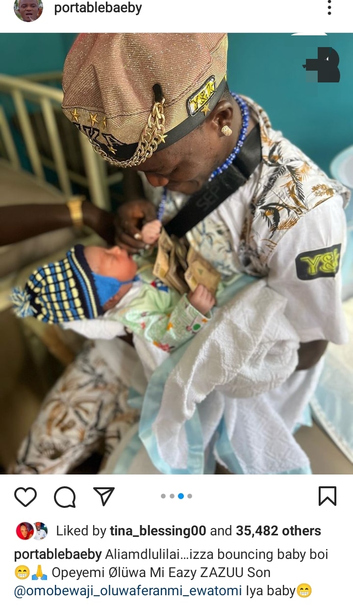 “Aliamdlulilai…izza bouncing baby boi😁🙏 Opeyemi Ølüwa Mi Eazy ZAZUU Son