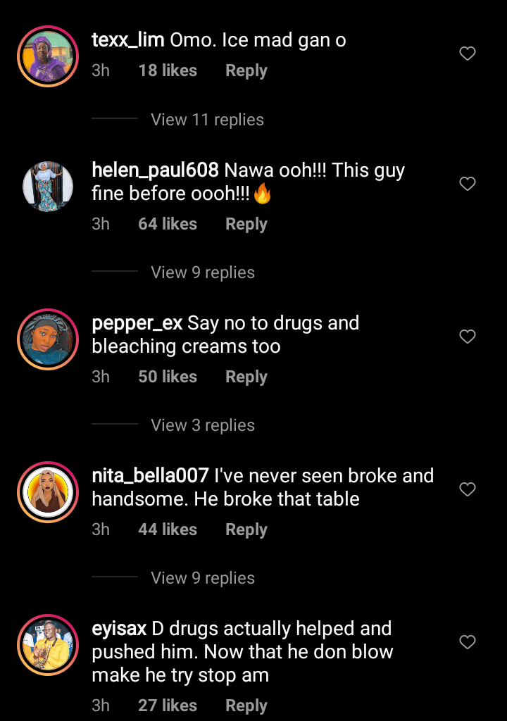 As reactions trail, @Moee said, “It’s obvious he is now on drugs.”