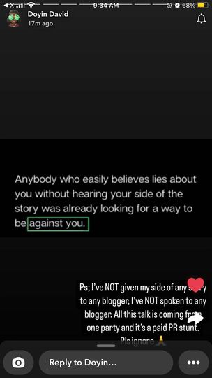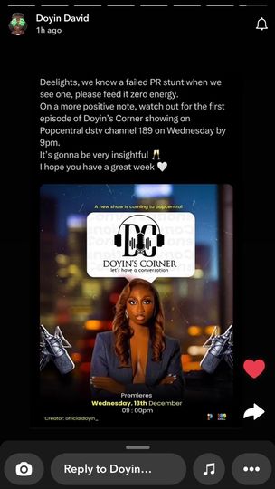 However, Doyin has shot down the allegations of the blogger, Cutie Juls saying that every story posted in connection to the video brouhaha is a PR stunt and must be ignored.