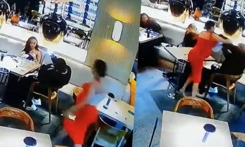 Pregnant side chick attacks boyfriend’s main girlfriend in a restaurant