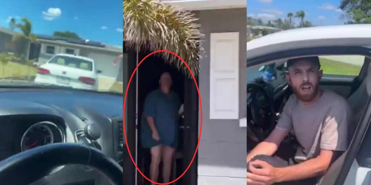 After a few moments, a man answered and claimed her boyfriend wasn’t there before quickly shutting the door. However, the woman persisted, banging on the door until her boyfriend eventually emerged.