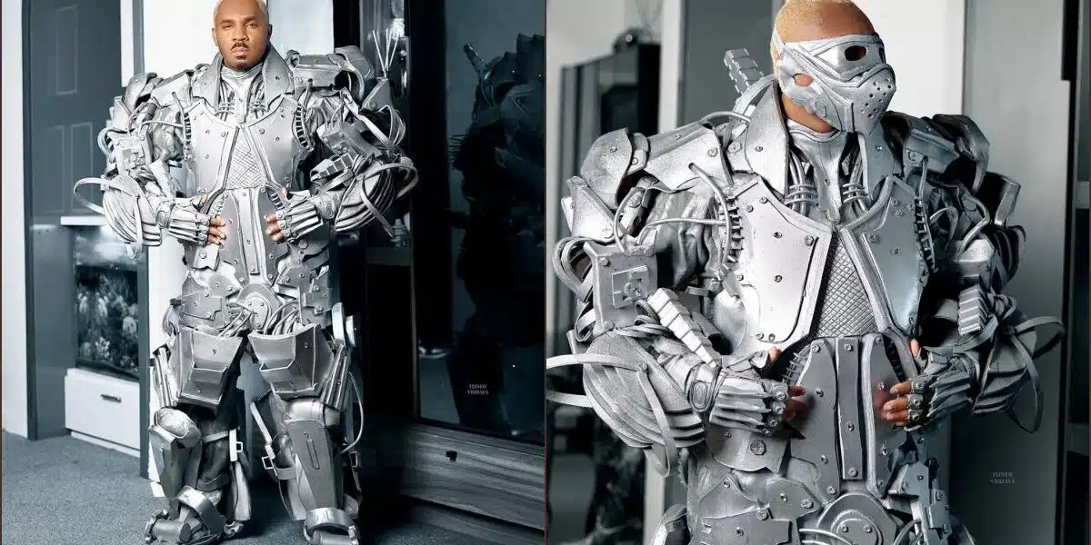 Known for his eccentric red carpet entrances, Pretty Mike raised the bar with a futuristic costume designed to resemble a superhero exosuit, similar to that of Marvel’s Iron Man.