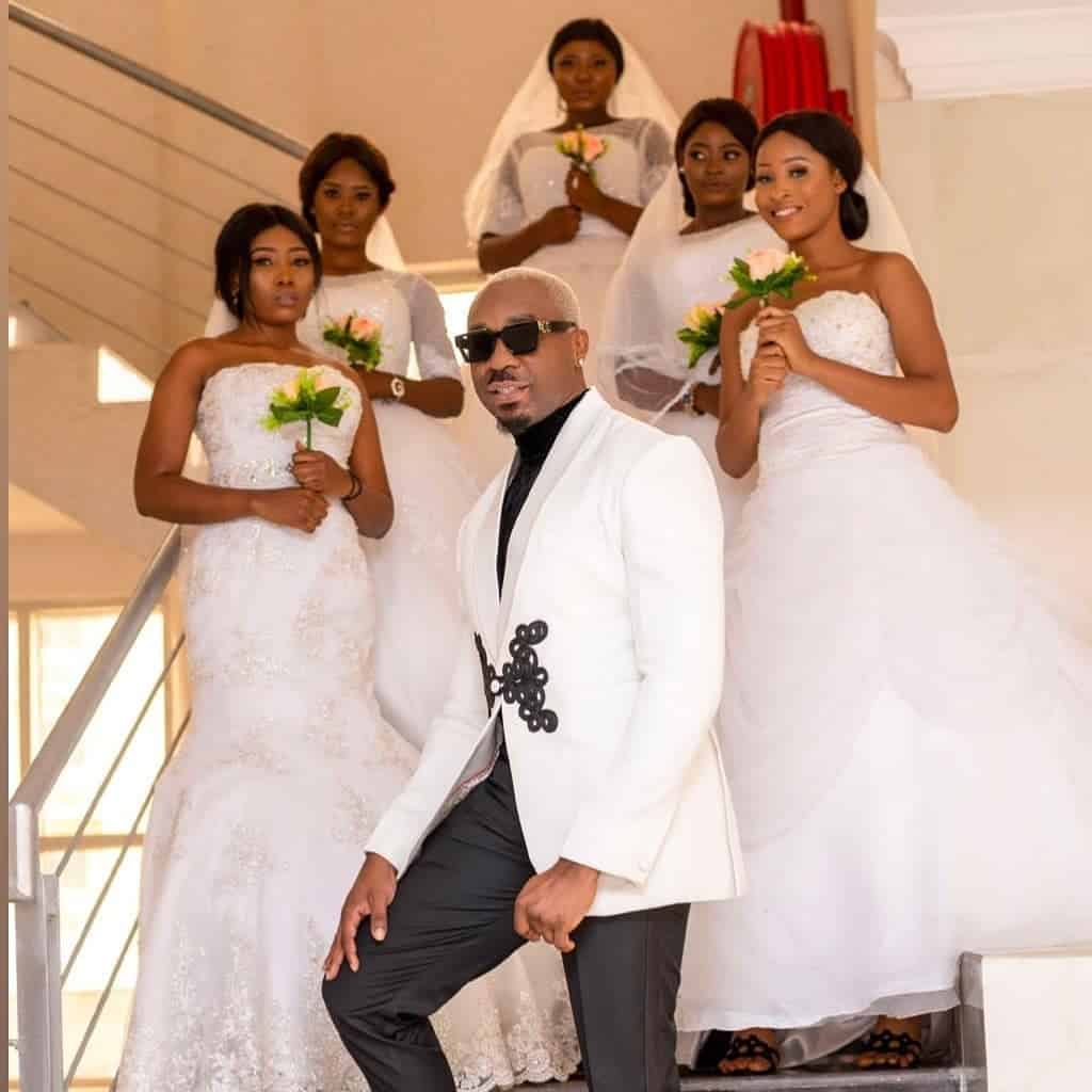 Pretty Mike was the cynosure of all eyes today Septeember 22nd when he stormed a wedding reception accompanied by five models who were dressed as brides.