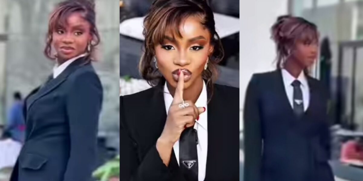 A video circulating online shows Priscilla Ojo looking elegant in a suit outfit, striking poses with enthusiasm.