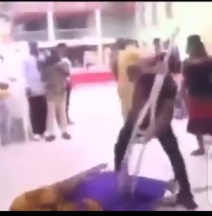 Prophet Chukwuemeka Odumeje popularly known as “Indaboski Bahose” is seen in a viral video performing a weird miracle on an old woman with crutches.