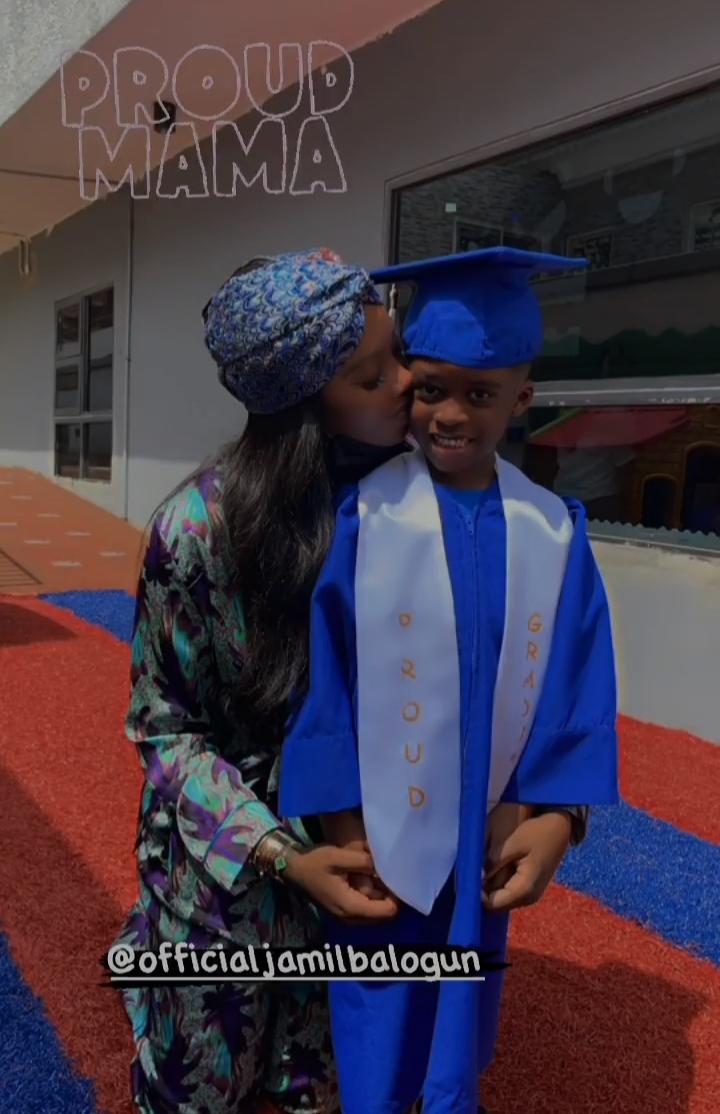 A-list Nigerian female artist Tiwa Savage has taken to her Instagram story to celebrate her son, Jamil Balogun, as he graduates from pre-school.