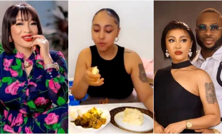 In the midst of the brouhaha, Rosy Meurer has shared a video of herself eating egusi soup and Eba with a cheering caption.