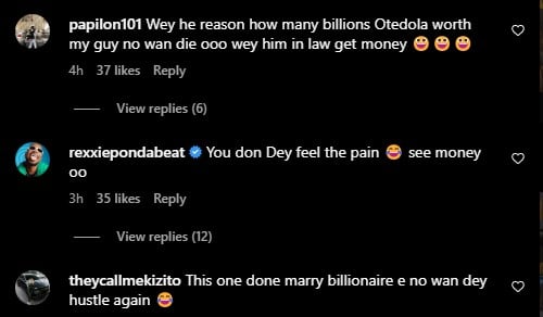 “Wey he reason how many billions Otedola worth my guy no wan die ooo wey him in law get money 😀😀😀,” a social media user wrote in reactions.