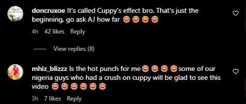 Another user added, “Is the hot punch for me😂😂😂😂some of our nigeria guys who had a crush on cuppy will be glad to see this video 😂😂😂😂😂😂”