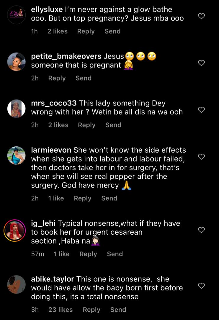 The said pregnant woman, however, went through the process of having her skin bleached despite the delicate state of carrying a baby in her tummy.