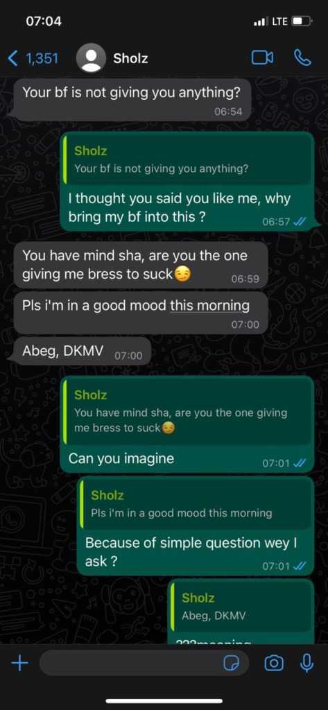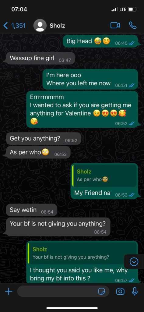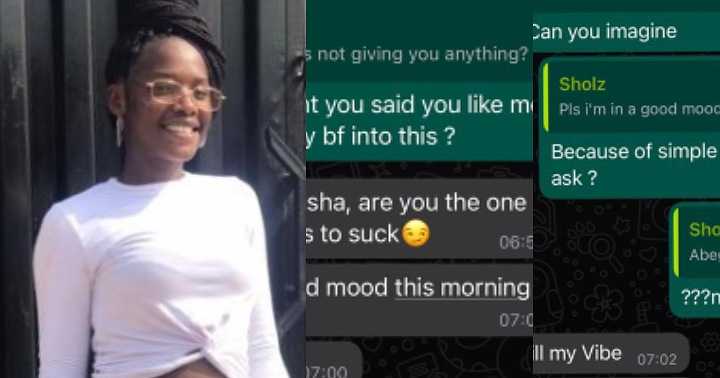 A lady identified as Olamide has been dragged online after she shared her chat with a male friend who blocked her on WhatsApp.