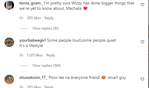 “I’m pretty sure Wizzy has done bigger things that we’re yet to know about. Machala ❤️,” a fan wrote in reaction.