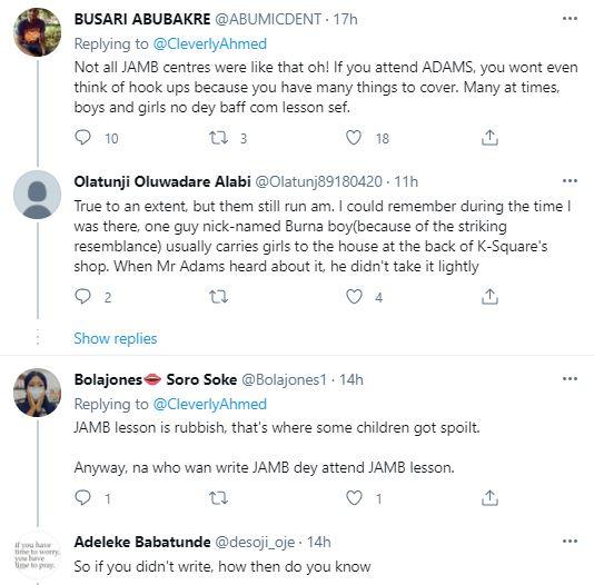 “JAMB Lesson centres are basically physical hookup sites,” he wrote in a tweet.