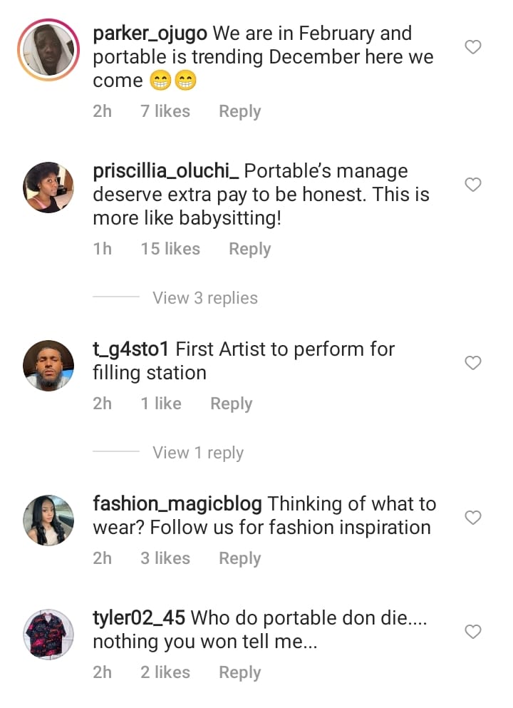 Reactions as Portable climbs atop filling station to perform for fans (Video)