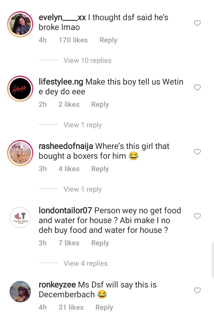 rasheedofnaija wrote: “Where’s this girl that bought a boxers for him”