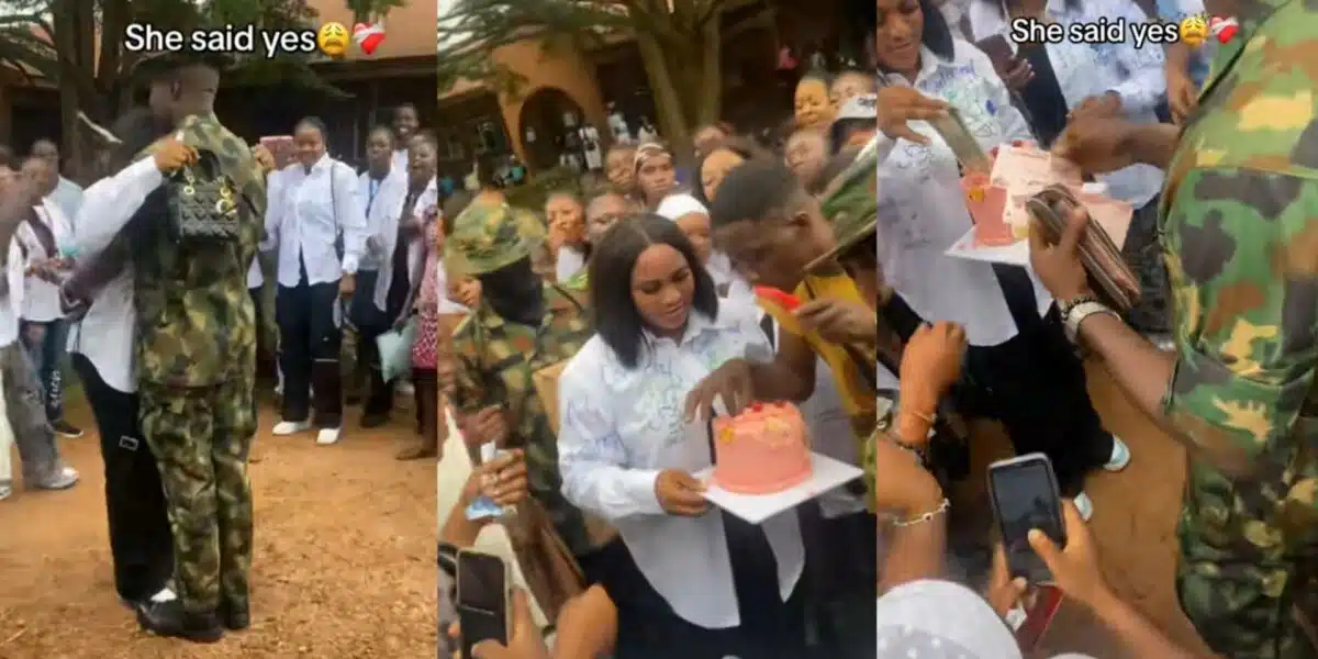 Reactions trail moment military man proposes to girlfriend on sign-out day