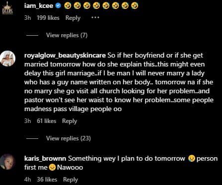 Some Nigerian celebrities have reacted to the comment made by actor Zubby Michael after a lady tattooed his name on her waist.