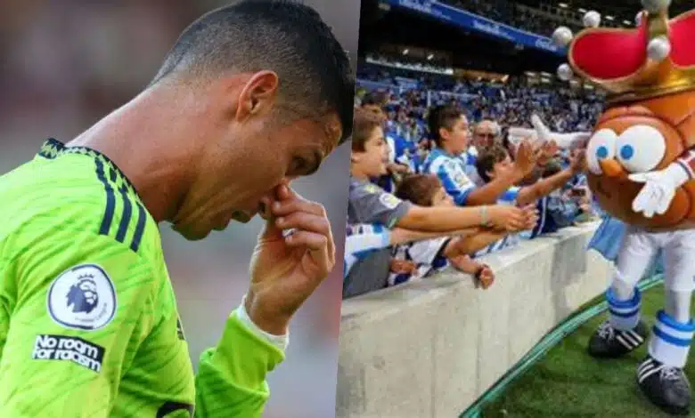Portuguese football star, Cristiano Ronaldo got quite a shade from Real Sociedad’s mascot after Manchester United suffered a disappointing result against the Spanish side on Thursday night.
