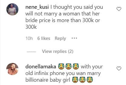 The reality star had taken to his Instagram page to flaunt wads of cash with a caption seeking to know what it would cost to marry Erica.