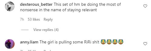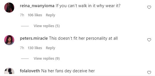 The dancer, however, stepped out in a perforated see-through outfit that triggered reactions from fans who slammed her for trying to dress like the American singer, Rihanna.