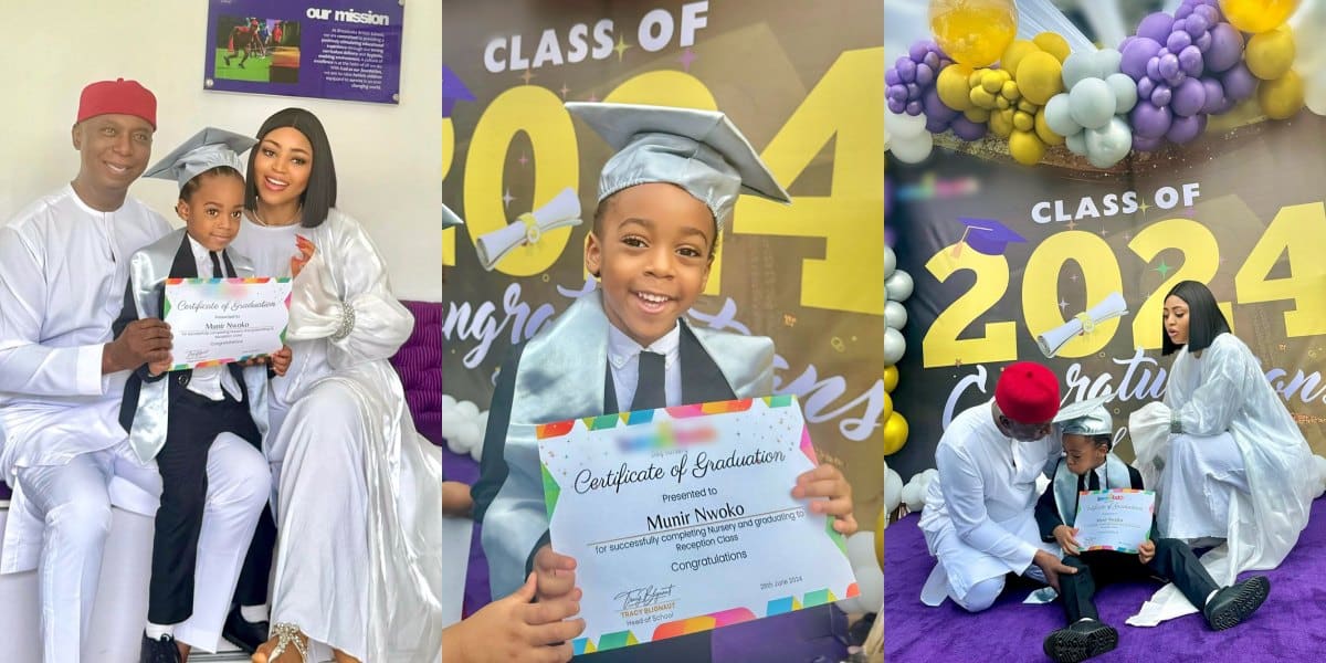 Regina Daniels and husband, Ned Nwoko celebrate as son graduates from kindergarten