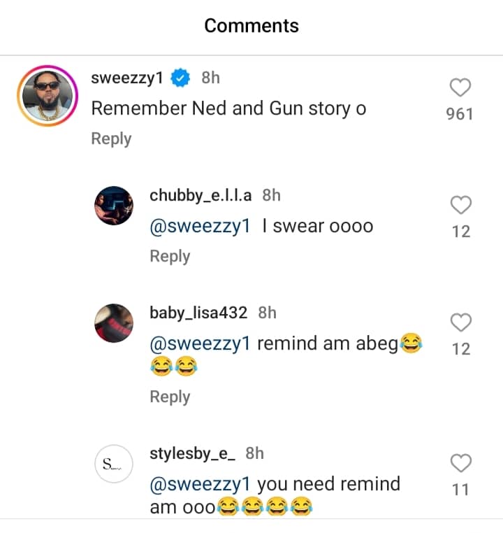 Reacting to this, Regina Daniels’ brother wrote: “Remember Ned and gun story o.”