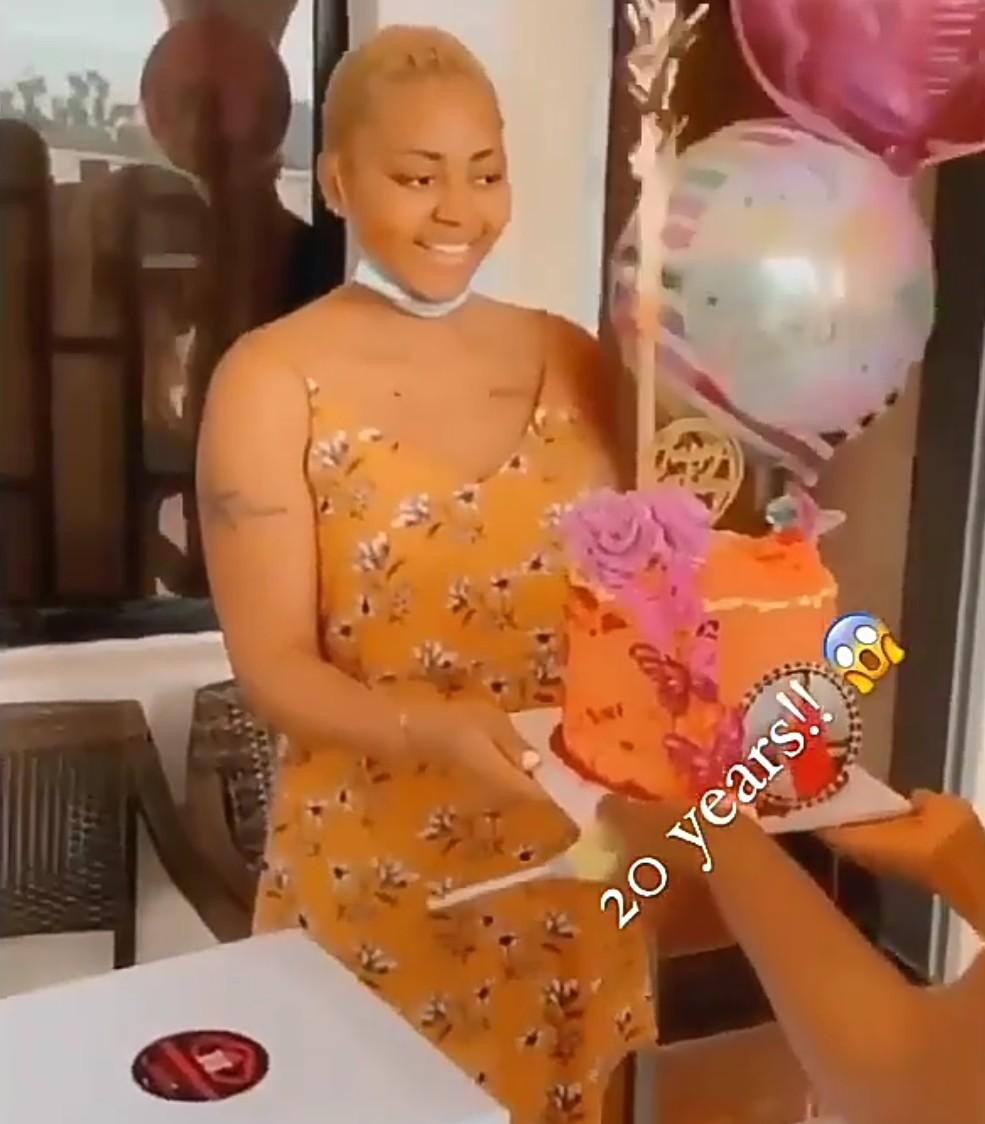 The beautiful mother of one who reportedly turned 20 today, was seen in a video, all smiles as she held her beautiful birthday cake which was made specially for her.