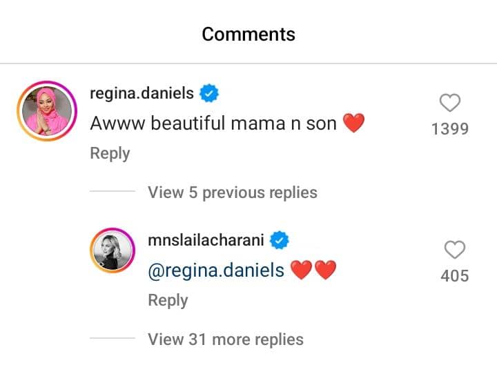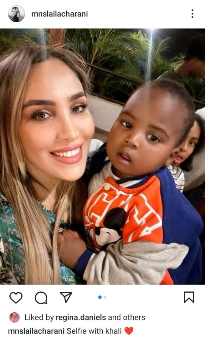 Popular Nollywood actress, Regina Daniels, reacted immediately after her co-wife, Laila, posted a photo with her son, Khalifa, on her Instagram page months after their alleged beef went viral online.