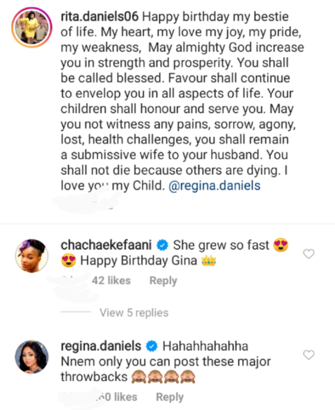 Nollywood actress, Regina Daniels has reacted after her mother shared her major throwback photos on Instagram.